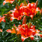 90-120 Days to Maturity. Lilium asiaticum ’Red County’. Red County Asiatic Lily Bulbs. Non-GMO,hybrid, perennial, asiatic lily bulbs. A striking lily with upward-facing, vibrant red blooms. Compact and easy to grow, Red County lilies are prized for their bold color, reliability, and suitability for beds, borders, and cut flowers. Blooms early to midsummer on sturdy stems.