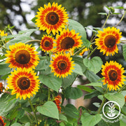75 Days to maturity. Helianthus annuus. Santa Fe Sunrise Sunflower Seeds: Non-GMO. Ornamental. Annual. Santa Fe Sunrise F1 hybrid is full-faced brown-headed sunflower, excellent for sun-filled gardens! This pollen-less hybrid...