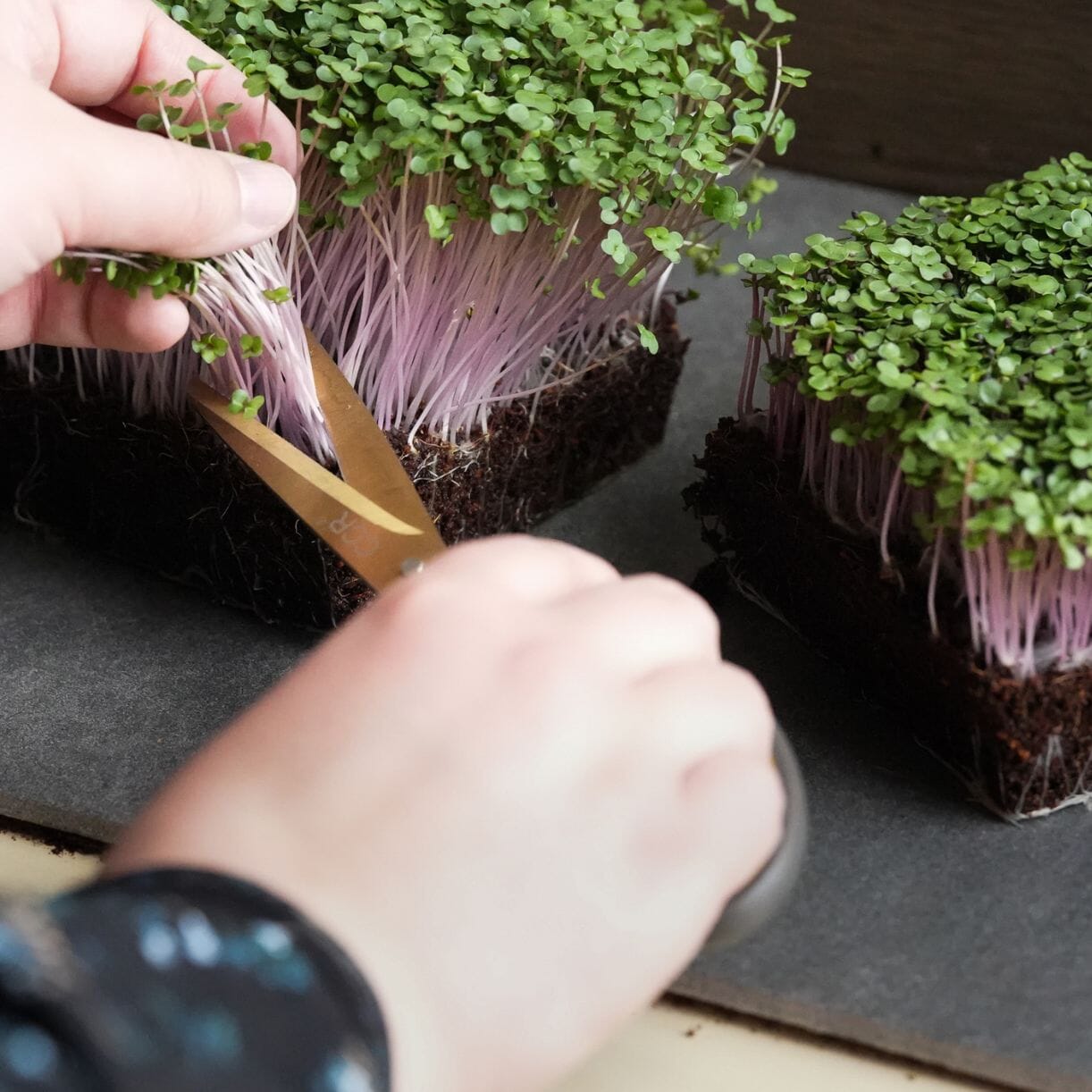 Harvesting Purple Vienna Kohlrabi Microgreens