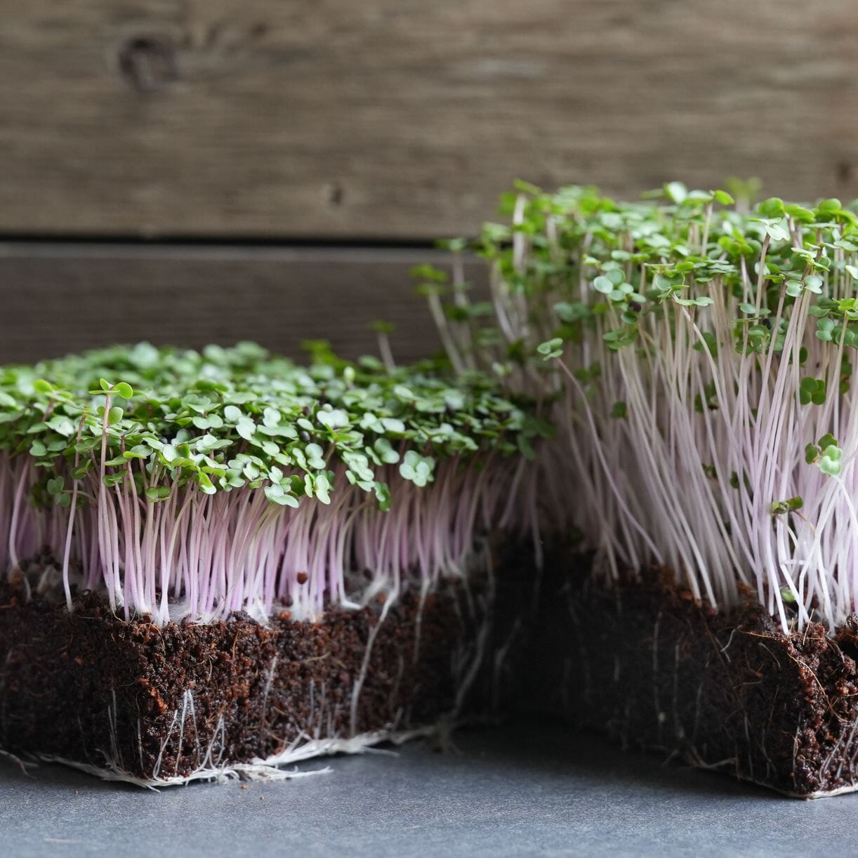 Purple Vienna Kohlrabi Microgreens wood background